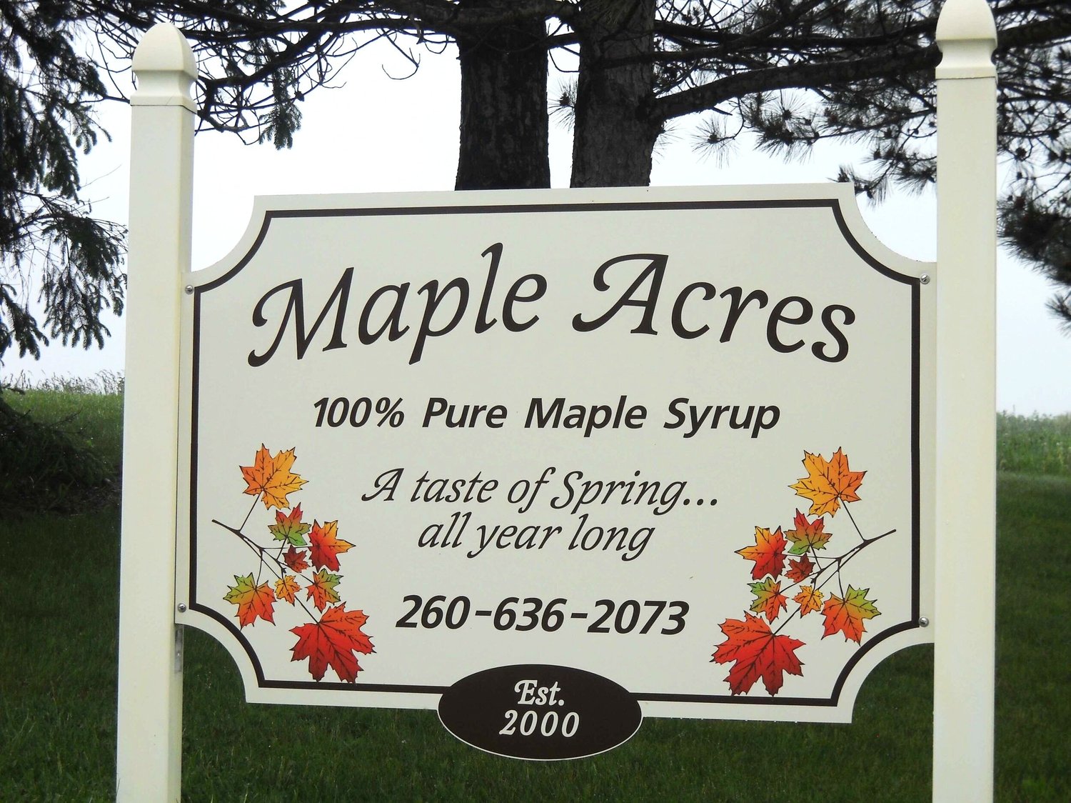 Maple Acres is a 5th generation maple syrup producer located in southeastern Noble County near Chain-o-Lakes State Park. We have about 2,000 trees in production making roughly 500 +/ - gallons of syrup per season. The 100% all natural syrup is organically produced in the state-of-the-art facility on the Owen homestead. Using our maple syrup, we make value added products including pure maple cream, maple sugar, traditional maple leaf candies and maple chocolates.