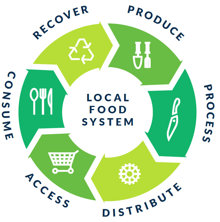 The term local food system refers to all of the activities associated with producing, processing, distributing, accessing and consuming food and recovering food waste within a specific region. The local food produced on Northeast Indiana farms that is also consumed in Northeast Indiana is part of a localized food system that connects our land to our tables. The businesses and organizations that are a part of this system are featured in our Local Food Guide. See “What is local food?” .